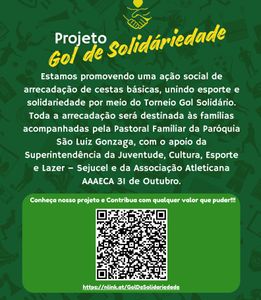 Estamos promovendo uma ação social de arrecadação de cestas básicas, unindo esporte e solidariedade por meio do Torneio Gol Solidário.