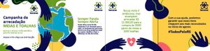 Após a nossas bem-sucedidas campanhas de alimentos, roupas e de arrecadação de absorventes, que nos permitiu ajudar com mais de 8000 pacotes, surge agora uma nova necessidade urgente. Nossos irmãos Bandeirantes do RS estão solicitando nosso apoio com doações de toalhas de banho e meias, itens essenciais para o conforto e bem-estar no dia a dia.