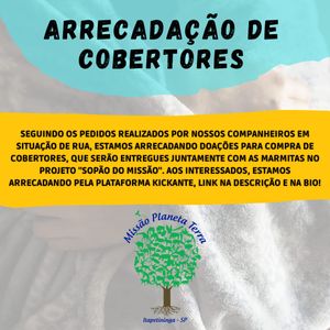 No último sopão, do dia 18/07, presenciamos uma triste realidade: nossos companheiros em situação de rua estão passando frio, tremendo, implorando por cobertores. Todos os pontos de entrega de marmita, já estabelecidos de acordo com nossa vivência com o projeto, vieram com súplicas por conta do frio. Alguns dos companheiros falaram que trocariam a marmita por um cobertor. O Sopão do Missão visa trazer o mínimo de dignidade e humanização para os tão humilhados que estão na rua. Presenciamos de tudo: famílias, pessoas de idade, casais, adolescentes... Todas carentes devido aos preconceitos estabelecidos pela sociedade. Logo, nossa proposta é simples: tratamos essas pessoas como devem ser tratadas, e seus pedidos devem ser atendidos para terem o mínimo de bem estar diante uma realidade tão cruel. Logo, passamos essas súplicas para vocês. Ajude-nos a cobrir nossos companheiros em situação de rua! As doações serão concentradas na plataforma Kickante. O link se encontra na Bio. Agradecemos muito o apoio de todos que colaboraram, e passo as palavras daqueles que estão na rua para vocês: muito obrigado pela linda atitude e grande coração