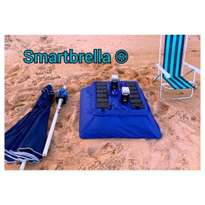 O Smartbrella® Super conta com sistema automático de perfuração na areia com apenas um click no botão,duas placas de energia solar e cabos USB para carregar equipamentos eletrônicos, além da mesa Sunporte® para colocar celular e porta copos Ou seja tudo perfeito e muito prático para um dia excelente na praia com a família e amigos !