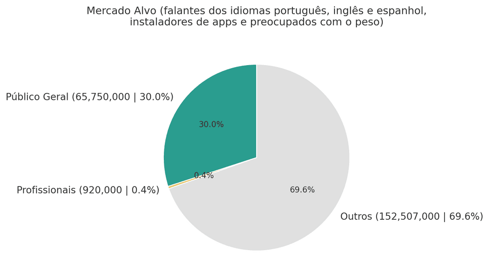 Simulação para o mercado dos falantes de Português, Inglês e Espanhol (o aplicativo já está traduzido e disponível em Português e Inglês. Só falta o Espanhol) totalizando algo como 66 milhões de potenciais usuários.