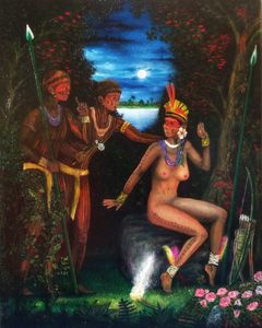 Olá a todos, gostaria de apresentar os motivos do anúncio e o meu projeto, venho procurando um auxílio para financiar meu trabalho, que é ligado a cultura e investir em artes plásticas que é um gênero sem muitas portas para iniciantes no Brasil e o que me levou a tentar no estrangeiro, em uma breve apresentação do meu projeto, a tela se chama, a lenda de Iara. Estou mostrando a foto de como está no atual momento, sinto muito, a foto não estar nítida, porque meu celular não é muito bom, é apenas para ver que a pintura é real.