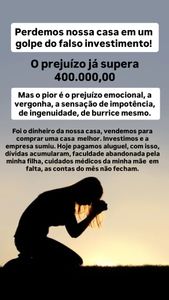 Fui vítima de um golpe financeiro praticado por uma empresa de investimentos em ações. O valor perdido foi fruto da venda de um imóvel, dinheiro que seria usado para a compra da minha nova casa própria. Em vez disso, perdi tudo.