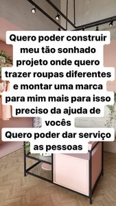 desde meus 12 anos venho tentando mudar de vida vim de uma família humilde,perdi minha mãe cedo nunca tive pai e moro sozinha tenho vontade de ajudar minha família que cuida de meus irmão mais novos e quero abrir essa loja pois e um sonho de pequena e quero gerar empregos para minha família e quem sabe em breve para mais pessoas