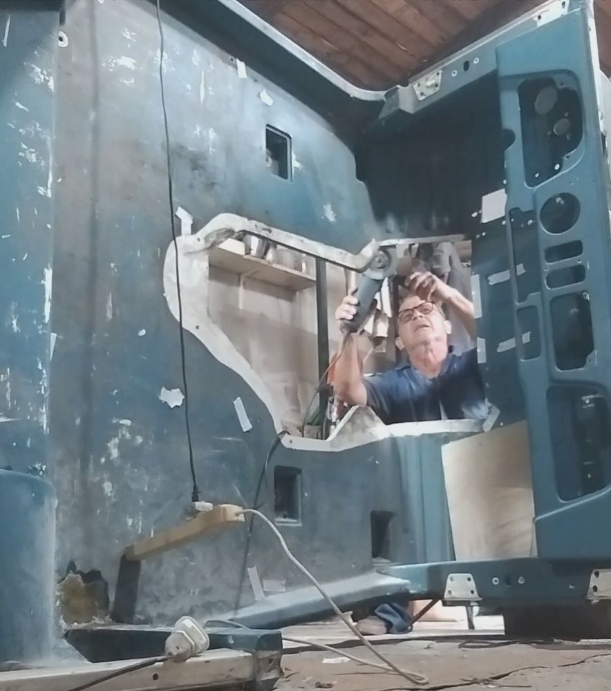 , mas me empolguei e tirei os curvões também para consertar com fibra de vidro umas ferrugens. Uma coisa puxa a outra, tirei as 3 portas e o quadro do parabrisa que estava podre, comprei uma bateria nova, então os recursos que já quase não existiam para este projeto ficaram bem escassos, especialmente para ficar pronto até 2026!