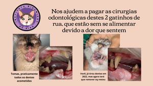 Cuido de alguns gatos na minha rua, estes dias 2 deles apareceram com dificuldade para se alimentar. Ao avaliar, notei que ambos estavam com uma doença chamada Complexo Gengivite Estomatite, que necessita de cirurgia odontológica para remover os dentes (total ou parcial).