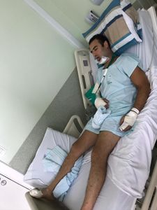 Fiz cirurgia para reconstrucao da mandibula, cirurgia do polegar direito e uma cirurgia do ligamento joelho esq. (reconstrucao LCA)