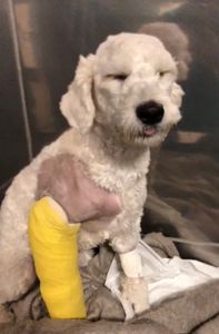 Oi amigos, me Chamo Barbara e sou mamãe do Nico, um vira-lata meio poodle, que já nasceu sofrendo. Vindo de um canil, já com 45 dias estava com pavovirose, e ele seria sacrificado. Foi amor à primeira vista e depois de um longo e caro tratamento contra a pavovirose, filnamente Nico conheceu a felicidade e é super carinhoso, meigo e amigo de crianças. Ocorre que semana passada, ao pular de um móvel, Nico sofreu uma grave fratura na pata dianteira. Tentamos imobilizar em casa e dar remédio pra dor, pois o valor da cirurgia seria muito alto. Infelizmente a fratura não melhorou e encontrei a clínica especializada em ortopedia veterinário ORTOTEC, que foram maravilhosos com ele, entretanto como a fratura estava muito feia e infeccionada, seria urgente fazer a cirurgia no mesmo dia, dia 27/09, pois ele poderia perder a pata ou até mesmo falecer. O total da cirurgia junto com a placa deu o valor de R$ 8.865,00. Desesperada e sem o valor, eu assinei duas notas provisórias e preciso pagar pra a clínica que está cuidando tão bem dele. Por favor, peço ajuda para que meu cachorrinho que precisa de cirurgia para poder ter qualidade de vida, pois ele é tão puro e já sofreu muito. Nico nasceu para ser feliz e será, eu acredito.