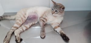 No dia 09/09 tive que ir correndo para o Hospital Veterinário Público com a minha gatinha Lua pois estava há 4 dias sem fazer as necessidades, com falta de apetite e sempre se escondendo de mim. Percebi que quando ela ia para a caixa de areia, forçava muito e não conseguia evacuar. Quando conseguia chegar perto, toquei em sua barriga e percebi que havia um caroço, que me deixou apavorada. Passei no hospital, já não havia mais senhas para cirurgia, mas graças a Deus ela foi atendida por um veterinário que aplicou soro nela, já que estava muito desidratada. O diagnóstico foi de uma possível hérnia, mas só teria certeza com os exames de ultrassom e raio-x.