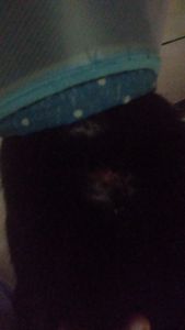 Ele está agoniado, e esta ficando deprimido, pois colocamos um cone nele para impedi-lo de se lamber.
