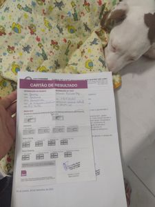 Bruce tem 2 meses e 25 dias ele na terça feira dia 21/09 ele fez uma cirurgia para retirada de um corpo estranho e ontem a noite começou a vomitar muito e hoje de manhã corri com ele pro veterinário e aqui ele fez o teste rápido que deu positivo com a doença Parvovirose e ele precisa ser internado urgente pois está grave a doença já 😭