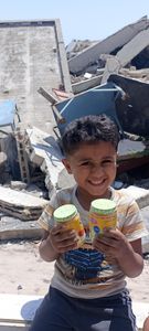 Com o valor arrecadado pelo link anterior conseguimos comprar muita comida, como farinha, bolo, macarrão, arroz, vegetais, leite em pó, frutas e distribuído para as pessoas em Gaza. Nada foi cobrado de nenhuma delas, todo o custo de compra, transporte e distribuição foi pago pela nossa arrecadação.