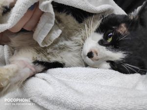 A história dele é seguinte: um gatinho jovem de origem desconhecida entrou num quintal com um cão, e houve uma luta entre eles. O cão saiu machucado, mas o gatinho muito mais. Teve fratura na patinha e ruptura de todos os ligamentos do joelho, exposição dos tendões, além das feridas causadas pelas mordidas.
