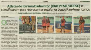 Ibirama Badminton tem atletas classificados para representar o país nos Jogos Pan-Americanos de Badminton, que acontecem nos dias 18 a 22 de julho, em Santo Domingo, na República Dominicana. Dentre os atletas classificados, estão cinco ibiramenses que representam a equipe Ibirama Badminton, 3º clube com o maior número de atletas classificados. Além deles, outros 5 atletas estão como reservas e poderão também se classificar, caso hajam desistências.