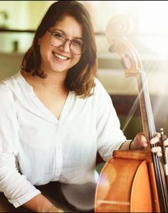 Atualmente sou aluna da Usp na classe do Professor Robert Suetholz, tenho também aulas privadas com o professor Rafael Cesário, e primeira violoncelista na Orquestra Jovem do Estado.