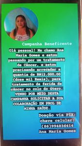 Essa campanha e muito importante para mim porque irei realizar minha cirurgia de retirada da ferida câncer no colo do útero