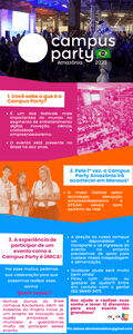 Pela 1ª vez, a Campus Party Amazônia irá acontecer em Manaus! O maior festival sobre tecnologia, disrupção, empreendedorismo e STEAM estará bem pertinho de nós! A experiência de participar de um evento como a Campus Party é ÚNICA! Por esse motivo, pedimos sua colaboração para que possamos realizar esse sonho!