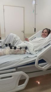 Foi uma fratura exposta onde eu usei a "gaiola" por quase 1 mês e depois fiz a cirurgia para a colocação da placa na extensão do fêmur e com 7 pinos no joelho.