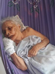 Essa senhorinha se chama Joana e tem 93 anos, acamada e tem um lado paralisado pois teve AVC e está aqui em fortaleza e ela está precisando voltar pra sua terra que é o inerior do maranhão.