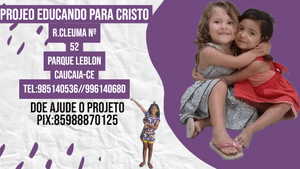 O PROJETO EDUCANDO PARA CRISTO CUIDA DE CRIANÇAS E JOVENS NA COMUNIDADE DO PARQUE LEBLON NA R.CLEUMA Nº52 EM CAUCAIA -CE E ESTAMOS EM DEBITO COM A ENEL E ESTÃO QUERENDO CORTA NOSSA ERNEGIA E SE ISTO ACONTECER SEREMOS OBRIGADO A FECHAR O PROJETO QUE JÁ TRABALHA NA COMUNIDADE A 22 ANOS