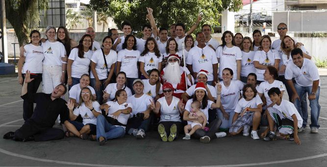 Somos um grupo de 50 voluntários e aproximadamente 600 pessoas, dentre elas 350 crianças, são beneficiadas diretamente com cestas básicas, enxovais, roupas, brinquedos, palestras capacitadoras, educação infantil, alimentação, apoio social, emocional e psicológico. Alimentos para o corpo e para a alma.