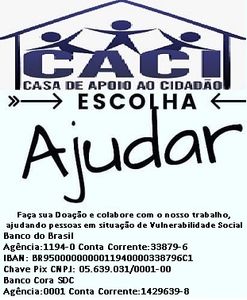 A Organização CACI - Casa de Apoio ao Cidadão direciona doações de recursos físicos, humanos e financeiros para a execução direta de projetos em âmbito nacional, além da prestação de serviços intermediários de apoio à outras Instituições com ou sem finalidades lucrativas, bem como órgãos do setor público ou privado.