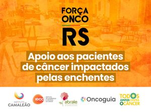 A coalização Força Onco RS - Apoio aos pacientes de câncer impactados pelas enchentes é uma iniciativa do Movimento Todos Juntos Contra o Câncer (TJCC), do Instituto Camaleão e do Instituto de Governança e Controle do Câncer (IGCC). Essa iniciativa foi criada em resposta à calamidade sem precedentes que afeta o estado do Rio Grande do Sul. Nesse momento, os pacientes em tratamento oncológico não hospitalar precisam, mais do que nunca, da nossa ajuda, atenção e cuidado.