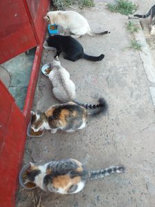 Esses gatinhos vivem na rua e eu alimento eles todos os dias ,não falta água e nem ração de boa qualidade ms infelizmente cada dia que se passa sempre aparece mais um ou dois aqui no meu portão e o custo ta ficando alto,eu preciso de ajuda pra continuar comprando a ração deles.