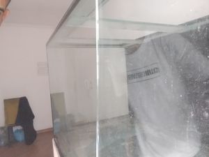 Esse aquário tem 735 litros, sempre foi meu sonho ter um desse tamanho, sempre tive menores, com muito esforço consegui adquirir esse e ainda o estou pagando, infelizmente ao encher ele trincou de cima a baixo impossibilitando o seu uso, não vou mentir eu trabalho porém o que ganho consigo pagar as contas e o fato de ainda está pagando somado com meus gastos diários, eu estou passando por uma situação apertada financeiramente, eu não tô conseguindo trocar essa placa frontal que é de 12 mm 150 x 70, já tem meses que ele está assim, se alguem poder colaborar para que consiga trocar esse vidro serei eternamente grato