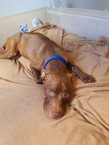 O Apolo é um Pitbull em condições de nutrição péssimas, porém, ainda assim, consegue demonstrar seu amor e esperança em seus olhos.