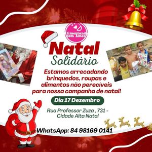 Alimentando com Amor pretende distribuir mais de 200 brinquedos para crianças em situação de rua, fornecer lanches bebidas sorvetes e um jantar de natal, como também presentear com kit de higiene a os adultos em situação de rua e jantar de natal de as comunidades de cidade alta e comunidade de passo pátria da cidade de Natal