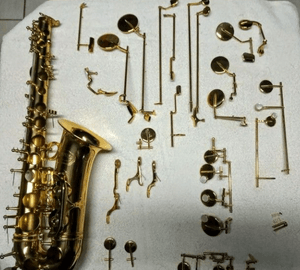 A manutenção consiste em trocar todas cortiças, desmontagem de todo instrumento, limpeza, troca de molas e tudo que um sax precisa para ser revisado.