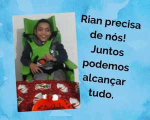 Eu me chamo Rian tenho 9 anos e tenho paralesia cerebral e devido às sequelas necessito de uma cadeira de rodas para a minha locomoção.