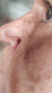 O câncer desse tipo, começa na camada mais superficial da pele, e cresce em direção as camadas mais profundas, podendo invadir músculos e ossos da face. No caso dela, de acordo com os médicos a lesão já é profunda e sangra constantemente.