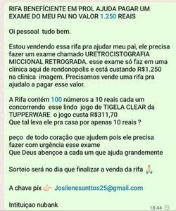 Meu pai precisa fazer um exame urgente pois está urinando sangue atraves da sonda, e o tratamento custa 1.250,00.. e serão necessários 2 exames. Que Deus toque no coração de cada um de vocês