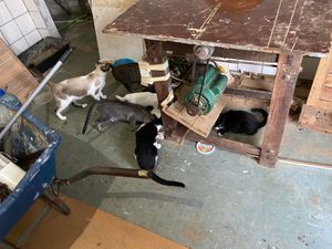 Tenho cuidado desses 07 gatos em um depósito precário no condomínio que resido, no entanto, com a mudança de síndico estão querendo que eu retire os animais do local, eu não tenho onde colocá-los e por se tratarem de animais adultos fica muito mais difícil a adoção.