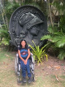 Victória nasceu com mielomeningocele e devido a essa condição, passou por diversas internações hospitalares, bem como cirurgias e procedimentos invasivos. E também por isso, ela é uma pessoa com deficiência física, que necessita e faz o uso de cadeira de rodas.