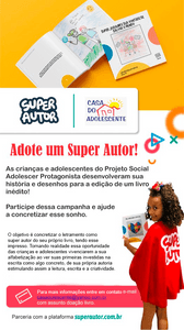 Em parceria com a plataforma superautor as crianças e adolescentes foram estimulados na sua capacidade criativa e no protagonismo das suas histórias no intuito de despertar o interesse pela leitura e escrita!