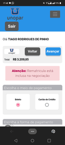 Irei quitar todas as pendências com a Unopar e continuar meus estudos e fazer a rematrícula e conseguir um estágio pra manter os gastos com os estudos.